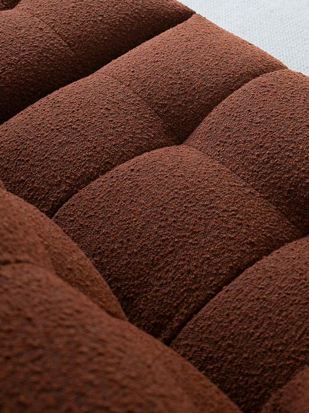 The Boba Sofa is crafted with a solid wood or plywood frame, soft premium upholstery (such as fabric, velvet, or leather), and high-density foam or down-feather cushions for comfort. Its legs are typically made from wood or metal, offering a sleek, modern look.